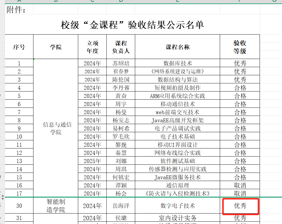 3. 岳海洋老师负责的 “金课程” 验收项目,经评审验收结果为优秀。