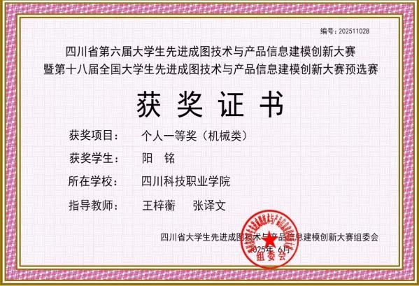 2025年6月获得第18届全国大学生先进成图技术与产品信息建模创新大赛 省级 个人一等奖