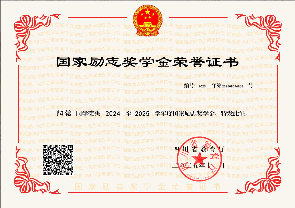 2025年11月获得国家励志奖学金